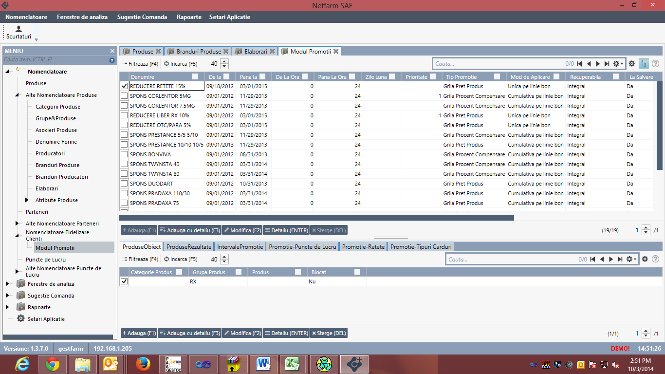 - Acces la o serie de rapoarte operationale care ajuta farmacia in desfasurarea activitatii